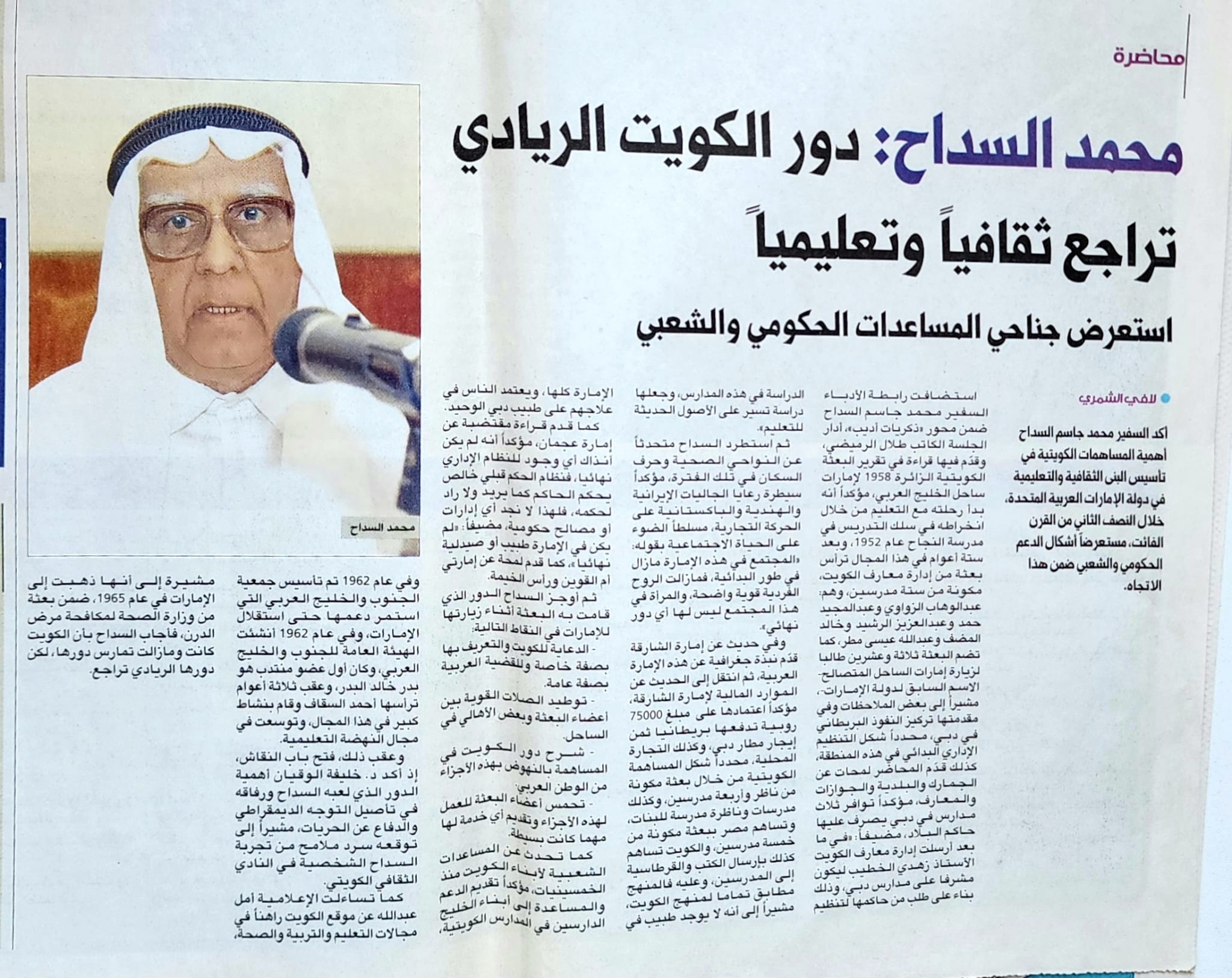 خلال مسيرته الطويلة كان السفير محمد جاسم السداح محط اهتمام الصحافة ووسائل الإعلام المختلفة، وقد أجرى العديد من اللقاءات في الصحف المطبوعة وقنوات التليفزيون، وكتب عنه العديد من الكتاب والمثقفين مقالات صحافية وتقارير مطولة في الصحف اليومية والمجلات الأدبية، تغطي جوانب من مسيرته العامرة في الميدان التربوي والعمل الوطني والسلك الدبلوماسي.كما حظيت (مدرسة الكويت الانجليزية) التي أسسها أواخر السبيعينات من القرن الماضي باهتمام الصحافة ووسائل الإعلام، وكانت أنشطة المدرسة المتنوعة تتصدر صفحات الصحف والمجلات على مدار مسيرتها الممتدة لأكثر من 40 سنة.